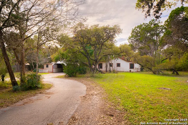 Charming Single-Story Home in Sought-After Shavano Park. Nestled on a sprawling 0.99-acre lot adorned with mature trees, this single-story home combines timeless charm with modern potential. The circular driveway welcomes you to this inviting property, offering ample parking and a grand entrance. Inside, you'll find authentic saltillo tile floors, a hallmark of Southwest elegance, and unique brick accents that add warmth and character throughout. The home features 2 bedrooms, 1 full bathroom with beautifully detailed talavera tile, a half bathroom, and an additional flex space that can be used as a third bedroom or additional living area. Secondary bedroom has built-in shelving-perfect for remote work, study, or a collectors library. Step through an elegant archway to a greenhouse sunroom, ideal for gardening enthusiasts or as a serene retreat. Outdoor living shines with a covered patio, an outdoor fireplace, and plenty of space to entertain or relax under the shade of mature trees. Additional storage room off the 2 car covered carport. This home is a rare opportunity to own a piece of Shavano Park's charm while enjoying proximity to upscale amenities. With its unique features and tranquil setting, this property invites you to create your dream home. Newer HVAC system. Don't miss out-schedule your showing today!