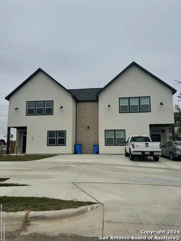 Luxury Duplex in La Vernia! Enjoy stunning 10FT ceilings, level 5 finished drywall with waterproof luxury vinyl flooring throughout, an open concept living space, and a fully equipped grey shaker cabinet kitchen set with Quartz Countertops and top of the line stainless steel appliances! Located directly adjacent to highly sought after La Vernia ISD! Property boasts spacious parking and a wooden privacy fence for the back yard! A great investment in a high growth area, live in one and rent the other, or rent both sides!