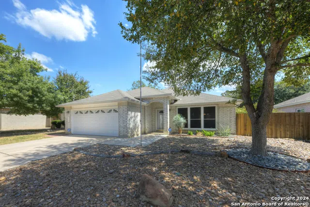 Open House 10/12 1:30-4:40pm ~Welcome to this rare find-a spacious 1-story home in the highly sought-after, gated community of Cedar Springs in Helotes. This beautifully maintained property offers both comfort and privacy, perfect for buyers looking for a thoughtfully designed home. Freshly painted interior! ~The owner's retreat is a standout feature with its two walk-in closets, high coffered ceiling, and a versatile sitting room that's ideal for a nursery or home office. The remodeled en-suite bath is wheelchair-accessible and includes an oversized all-tile shower with a built-in seat, double vanity, granite counters, and updated lighting. ~No carpet in this home-enjoy hardwood and tile flooring throughout. The expansive kitchen has been updated with granite counters, a large island, deep sinks, and plenty of cabinet space. There's also a walk-in utility room with storage and space for a freezer. Secondary bedrooms are thoughtfully split from the owner's retreat, ensuring privacy. ~Step into the grand family room with high coffered ceilings. Plenty of room for entertaining for the holidays. ~The generous sized breakfast room has direct access to the backyard, shaded throughout the day, offers plenty of space for outdoor relaxation and backs up to a 5-acre residence, ensuring additional privacy. ~Additional features include: a new water softener installed 10/24, solar screens, and a low-maintenance, zeriscaped yard. Community amenities include two pools, a clubhouse, tennis/pickleball courts, volleyball & more. ~Don't miss your chance-there are only 11 one-story homes for sale under $375,000 in the 78023 zip code as of 10/3/24. Schedule your showing today!