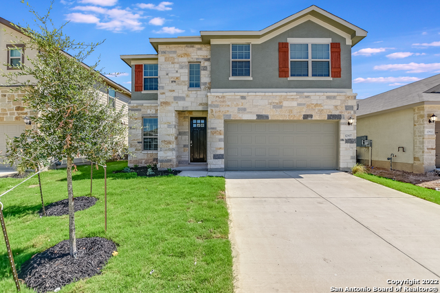 Brand NEW energy-efficient home ready NOW! Unwind in the Sabine's luxurious main level primary suite, secluded from the secondary bedrooms upstairs. Stone cabinets with smoky grey granite countertops, grey cool tone EVP flooring and textured grey carpet in our Cool package. Prescott Oaks is located just west of Loop 1604 on Galm Road in the awardwinning Northside Independent School District. Known for their energy-efficient features, our homes help you live a healthier and quieter lifestyle while saving thousands of dollars on utility bills.