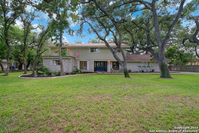 SHAVANO PARK- the place to be for the feel of country living while in the city. One of the most beautiful lots in all of Shavano Park. Huge, majestic Century Oak Trees throughout this .74 acre level lot. Home includes $130,000 of Improvements. Rear yard is a grownup & kid's paradise with luxurious Pool, new Playhouse and covered Patio. 4 Bedrooms, 3.5 Baths, Study and upstairs Loft Space. 3079 Sq. Ft. 3 car side entry oversized Garage. Spacious Family Room with Fireplace & wet bar overlooks open Kitchen. Loads of natural light & windows to view outdoors. Master Bedroom is downstairs. Upstairs includes 3 oversized Bedrooms, Loft Living area, 2 full Baths. Excellent storage including a 23' x 10' Cedar Closet upstairs. Unbeatable location with quick access to Loop 1604, Hwy I-10, La Cantera & The Rim Shopping, Medical Center, USAA, UTSA, Valero Headquarters and more. Excellent Northside ISD Schools.