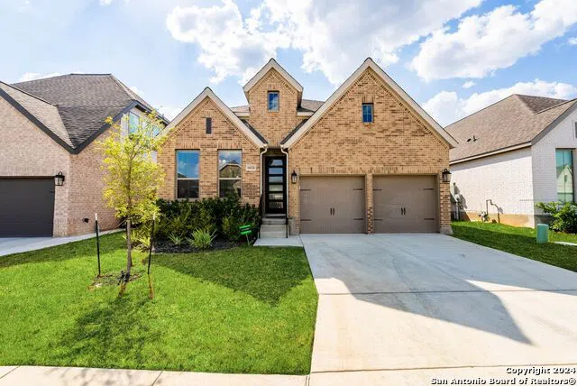 Welcome to this gorgeous, impeccably maintained Perry Homes in the sought after Kallison Ranch, this single-story, 4-bedroom, 3-bathroom gem filled with natural light from its massive windows is truly a showstopper. The open-concept floor plan is designed for modern living and entertaining, it seamlessly flows into the stunning chef's kitchen that boasts an abundance of cabinets, ample counter space, quartz countertops and a spacious island, along with a long breakfast bar, gas cooking, and stunning finishes throughout. The home features three bedrooms conveniently located in the main hallway, while the master suite offers a peaceful retreat at the back. The primary suite is designed for comfort and privacy, featuring a separate tub and spa-like shower, a private toilet area and generous walk in His/Her closets with double vanities. The backyard has a covered patio & no back neighbors, and Kallison Ranch offers fantastic amenities like a resort- style pool, playground, clubhouse, jogging/bike trails, and BBQ grills. You are also minutes away from the Government Canyon State Natural Area- serenity and tranquility at its finest. Come check out this Perry Home's showstopper TODAY!