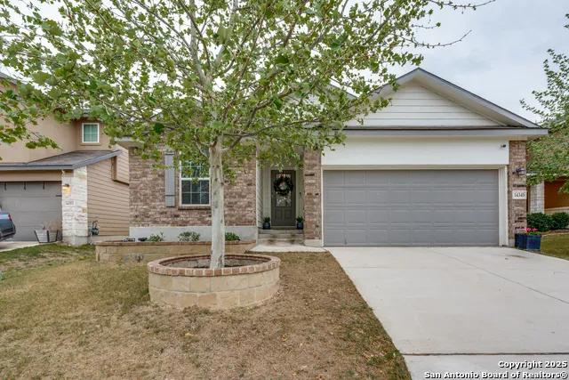The Brown Floor Plan by D.R. Horton Homes is a charming single-story, 3-bedroom, 2-bathroom home with 1,651 square feet of thoughtfully designed living space. With an inviting open-concept layout, the home features a separate dining area that flows into a spacious kitchen, perfect for gathering with family and friends. The kitchen is equipped with gas cooking, Whirlpool stainless steel appliances, and ample counter space, making it a dream for home chefs. The primary suite, located just off the family room, offers a large walk-in closet and a relaxing retreat. High 9-foot ceilings, 2-inch faux wood blinds throughout, and a pre-plumbed water softener loop add to the home's comfort and style. Plus, a water softener is included and ready for installation. This home has been very well maintained and is equipped with D.R. Horton's "Home is Connected" package, giving you smart-home capabilities, including control of the lights, thermostat, and locks from your mobile device. Step outside to the adorable backyard, where a large, mature tree provides shade and character. The covered patio is the perfect spot to enjoy your morning coffee or unwind in the evening. Located in the desirable NISD school district, this home offers easy access to Loop 1604 and Highway 90 and is just a short drive from Lackland AFB. The Riverstone at Westpointe community features an exciting amenities center with a pool and water slide, plus a second pool with a lazy river currently under construction. Don't miss out on this fantastic home in a wonderful neighborhood! Schedule your showing today!