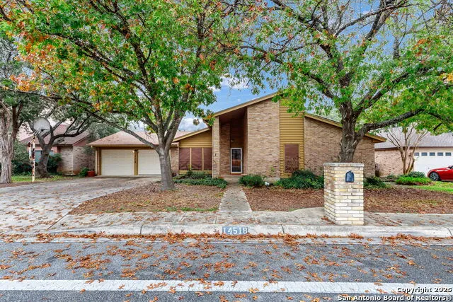Centered on the lot with mature oak trees, this spacious four-bedroom, two-bathroom home boasts a living area with abundant natural light, a formal dining room, and a separate breakfast nook, all of which encompass a brick fireplace. The expansive backyard features a large, covered patio and is green belt adjacent for added privacy. The primary bedroom, secluded in the rear, includes Jack and Jill closets, a drop-down shower, and access to the rear patio. Conveniently located between IH-10 and 1604, you are just minutes away from Sea World, Six Flags, La Cantera, and The Rim shopping center!