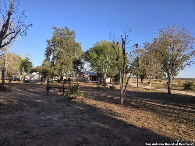 This beautiful brick home with metal roof and stained-glass entry doors is a must see! There is a Magnolia tree, pecan, walnut trees, a fig tree and 2 large, majestic oaks for swinging from. It features larger doorways (handicap accessible) with double doors for entry and Dual Masters offering large bedrooms and walk in closets each master with a dedicated bathroom. The garage has a half bath and has been insulated and sheet rocked to add on a room or two in the future. There are also 2 attic access entries with the drop down stair entry under the carport. There is an accessible ramp in the back for ease of access to the back door. Four other buildings join this home, there is a Metal workshop with sliding door and a concrete pad. There is a pump house next to the propane storage tank with a 385 ft deep well new in 2022. This pump house shed is also set up for Processing deer, hogs, annd any hunting animals with a drain already built into the floor! Behind the house is another shed lawn care barn combo that can be used for hay, feed, storage, tack room, or even outfitting for a chicken coupe, or fix it up to be an outdoor summer kitchen or she shed the options are endless with imagination it could be made perfect with a little TLC. The large RV storage barn with 50 amp set up provides shelter for your RV as well, it is 13' tall. The fully slide open drive-through doors for easy drive/in drive out convenience. There is also a tool room just outside the house right under the carport! Also Behind the metal workshop/garage there is a squeeze chute with holding pens and runway! Just off the back porch of the home is a concrete storm shelter/root cellar right next to the carport that could be a perfect fix up project for the avid prepper please take care as the stair way is metal and is old and rickety an easy fix for the right buyer! Raise your FFA animals or turn this into your homesteader or off grid living and stock up! Walmart and Restaurants are in nearby in Devine and an HEB Plus is not far away in the town of Lytle. All minerals are owned by the seller.