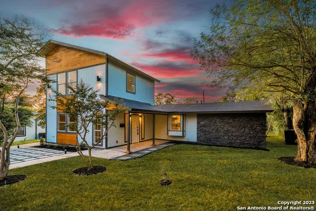 This stunningly home is the perfect blend of modern and luxury. The open concept layout, chic laminate flooring, and designer touches are ideal for entertaining in style. The living space features a chic accent wall, recessed lighting, and a statement chandelier. Enjoy the gourmet kitchen with stainless steel appliances, custom quartz countertops, and a prep island. Relax in the spacious master suite with luxurious double vanities, brushed gold faucets, and an oversized shower. A spacious, light-filled loft with a French balcony provides sunset views. This house will impress all who visit with its modernist design, custom wood finishes, and beautiful stone walkway surrounded by solar lighting. Conveniently located close to Lackland Air Force Base. Come and make it your forever home today. Upgrades include: all new AC, electrical, plumbing, fixtures, flooring, and appliances.