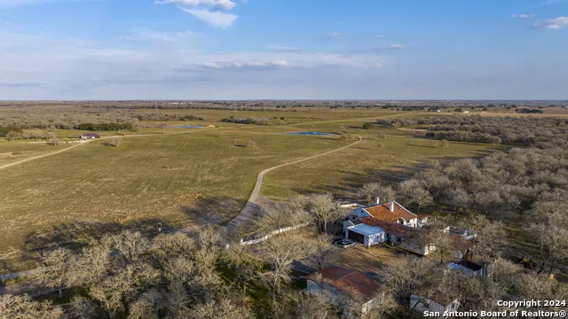 Extraordinary 1500 Acre High Fenced Ranch in Stockdale. 7 miles North of Stockdale, TX. 20 miles South of I-10/Seguin, 73 (1 hr 15 mins) minutes to downtown Austin, 45 miles from San Antonio, and 150 miles (2.5 hours) to Houston. Located in what is known as the Texas Triangle. The property boasts remarkable improvements with all major renovations completed in 2022. The main house, a stunning Spanish-style hacienda, stands as an architectural masterpiece with over 4,400 square feet of living space and a total of 9,000 square feet under its commanding red tile and metal roof. Adorned with white stucco walls, the residence exudes elegance and grandeur. Upon entering, one is immediately captivated by the unique features and elegant touches that adorn every corner. With 4 bedrooms and 4.5 baths, the residence offers ample space for both relaxation and productivity. A study, living room, sunroom and studio, chef's kitchen, and dining room provide perfect settings for work or leisure, complemented by two fireplaces that add warmth and coziness. A recent addition includes a custom heated and cooled resort style pool and spa, and an incredible outdoor living/kitchen area great for entertaining. The outdoor area creates a refreshing oasis complemented by an attached cabana with a firepit. Every detail of this magnificent home has been carefully considered, from thick walls ensuring privacy to Saltillo tile floors exuding timeless charm. For additional accommodations, a comfortable 1 bedroom (plus 3 bed sleeping loft) and 1 bath hunting lodge with a classic design and magnificent fireplace offer a cozy retreat for up to five guests. Near the cabin is a golf, bow, pistol and rifle range with targets ranging up to 1 mile distance. A separate stucco and tile roof home with 3 bedrooms and 2 bathrooms serves as the foreman's quarters. The estate also features two large barns. One barn is a large equipment barn/mechanic shop that's 4500 sqft and located next to the foreman's house. The second "owners" barn is 5000 sqft insulated and air conditioned and features a walk in game fridge and freezer. The ranch's expansive land is enclosed by a high fence, boasting a gentle rolling terrain with a perfect blend of wooded areas and open pastures. Cross-fencing enhances the ranch's suitability for both hunting, horses and cattle ranching activities. Mature trees and woodlands in the northern section provide privacy for the main residence and hunting lodge, creating a sanctuary for wildlife. Water features are abundant on the ranch, thanks to the Carrizo/Wilcox aquifer. Several (10) large ponds and water around the ranch feature an underground water piping system that keeps them full. Nine water wells, including two larger volume wells, cater to the ranch's infrastructure and supply water to ponds stocked with fish. Surface water is prevalent, with a branch of Alum Creek running through the property. Potential to enlarge and join two of the ponds to create a 20+ acre lake. The ranch is home to a diverse array of wildlife, including a herd of 200 cattle, whitetail deer, turkey, hogs, ducks, and dove. Exotic animals, such as Axis Deer, Blackbuck Antelope, Fallow, Elk and Red Stag, thrive on the property. With an extended hunting season and MLDP Level 3 permit, the ranch ensures comprehensive hunting experiences while preserving wildlife. State-of-the-art commercial grade working pens allow for cutting and sorting animals, completing the facilities designed for a professional and comfortable experience for friends and family. *Mineral rights vary for different tracts. Please see Agent for more information and details.