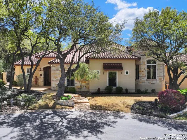 Located within the prestigious 24-hour guard-gated neighborhood, The Dominion, this pristine one-story residence, crafted by renowned builder Don Craighead, exudes elegance and sophistication. Situated on a private cul-de-sac lot this home offers the epitome of luxurious living. A charming courtyard entrance sets the stage for the grandeur that awaits within. Every detail of this home speaks to quality and craftsmanship, with high ceilings, an open floor plan, and exquisite architectural features throughout. The kitchen, adorned with ample cabinet and counter space, a vast center island, gas cooking, and stainless steel appliances, seamlessly flows into the dining and family areas, making it an ideal space for hosting gatherings and entertaining guests. The family room is a cozy retreat, boasting a fireplace, and built-in shelving, and is light and bright with floor-to-ceiling windows. The primary bedroom is a sanctuary unto itself, featuring a fireplace, a tranquil sitting room, and a spa-like bath complete with dual separate showers, a luxurious soaking tub, and a spacious walk-in closet with custom built-ins. Outdoor access to the patio and heated in ground spa adds to the allure of this private oasis. Additionally, a versatile casita with a full bath provides the perfect flex space or guest suite. The laundry room is a dream and offers both functionality and style. Step outside to discover a backyard sanctuary, complete with an expansive covered patio, a soothing spa with a waterfall feature, and lush mature trees creating a serene backdrop. Convenience abounds with an oversized rear-entry 3-car garage, offering ample storage space for all your needs. Perfectly positioned near access to Dominion Country Club's amenities and golf course, IH-10, shopping, and dining destinations.