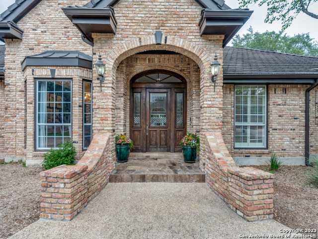 Motivated Seller!!! One-story home in prestigious Shavano Creek. Beautiful living room and sunroom w/brick accents opens to backyard w/pool and oversized deck. Kitchen has Caesarstone countertops with lg island, subzero, double ovens and butler's pantry. Hardwoods, custom millwork, home theatre system that can convey. Spacious Master, updated bath and custom closets. Lg secondary bedrooms w/ensuites and spacious closets. Beautiful outdoor space w/lg deck and stunning pool. Garden w/raised beds/greenhouse. Close to 1604, I-10, Wurzbach Pkwy, Alon and the Rim. Circle drive and gated driveway w/side entry garage.