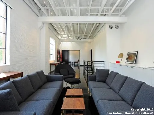Slick, contemporary loft with exquisite finishes. Dark floors and white walls show off the elegant design of architect Jim Poteet. The stunning end unit with walls of large industrial windows sits well off the street for privacy. Totally open floorplan invites entertaining, featuring 2 kitchens with top appliances. Access to rooftop deck with amazing city views. Great storage and built-ins, one garage and one carport spot.