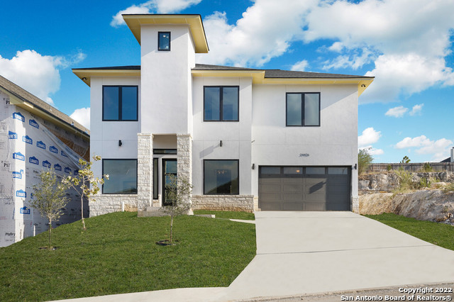 Contemporary new construction home in the gated subdivision of Ridge at Canyon Springs is ready for move in. This breathtaking home boasts over 3200 sq ft with 4br, 3 baths, and 2 half baths, office, and 2 living areas. Master bedroom and study are on main level. Upstairs is a large game room with wet bar, loft area, along with three additional bedrooms and 2 1/2 baths. Beautiful open floor plan with large island kitchen open to the living room and dining area. Kitchen contains custom cabinets, stainless steel appliances, and quartz countertops. Numerous upgrades including 8 ft doors, black windows and sliding glass doors, wrought iron railings, and unique lighting and plumbing fixtures.