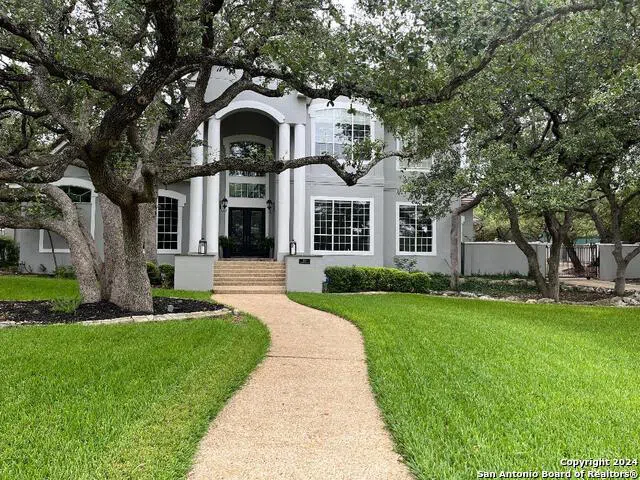 Extensively renovated and luxurious Shavano Creek home in desirable Shavano Park! This large home has three separate homes under one roof making it a great option for multi-generational living, or for families that have a need for separate living spaces that are still close to the main home. The main house is 4 bedrooms, 4.5 bathrooms. Primary master is downstairs with spa bath and extra-large closet. Expansive kitchen with professional appliances including Wolf dual fuel double oven, Subzero refrigerator, Marvel ice maker, warming drawer and centered by a massive island. Three secondary bedrooms, all ensuite and a large game room are upstairs. Two living and two eating areas in the main home and a library. The guest suite is 1 bedroom/ 1 bath and has a separate private entry (located on the second level and currently being utilized as an office). This area can be accessed through the garage or through the outside. Additionally, there is a pool/game house that has a separate kitchen, living space and bedroom upstairs (currently being used as media room) and two full bathrooms. This area also has a private entrance and can also be accessed through the garage or through the outside. The backyard is an entertainer's haven- sports court ready for pickleball or a basketball shoot-out, pool and hot tub, landscape lighting in the front and back and turf grass in back for low maintenance groundskeeping.