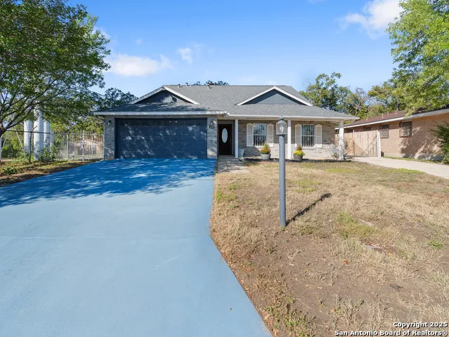 *Sunroom, Detached Accessory Dwelling Unit (ADU) & more!* Welcome to Meadowlark Avenue - a single story 4-bedroom, 2-bathroom home that features additional living area, modern upgrades, and must-see inclusions throughout! The property offers a total of 1,743 sq.ft. of main living space, a 301 sq.ft enclosed sunroom for year-round enjoyment, and a 408 sq.ft. detached Accessory Dwelling Unit (ADU) - perfect for guests, a private studio, or potential rental income opportunity! Upon entering the home, you are greeted to a spacious open living room with a brick-covered fireplace. The renovated kitchen boasts polished white cabinetry, stainless steel and white appliances (including a stove, microwave, refrigerator, and dishwasher), and offers multiple dining options - a breakfast nook, breakfast bar, and dining area for gatherings of any size. Double doors lead into an enclosed sunroom that add charm and natural light to provide an ideal transition to indoor-outdoor living. The primary bedroom features two closets (including a walk-in closet). The primary bathroom offers double vanities, a built-in makeup vanity with Hollywood style lighting, a dual-tub shower combination, and a separate walk-in shower for added privacy and comfort. The secondary bathroom showcases modern cabinetry and elegant design tile, adding a stylish look to the home. Additional thoughtful touches include a built-in wall-mounted ironing board, conveniently located in one of the bedrooms for everyday practicality. Throughout the interior of the home, you'll find upgraded light fixtures, track lighting, and wood shutters that further enhance the home's design. The attached two-car garage includes an automatic garage opener and convenient mail drop box. Step outside to an enclosed backyard with a covered patio and enjoy outdoor gatherings and relaxation. Two large sheds offer abundant storage, while new wood fence lines 100 ft of the separate concrete driveway leading to the accessory dwelling unit (ADU). The detached ADU offers its own kitchen and bathroom, equipped with a refrigerator, stove, and microwave. Matching white kitchen cabinetry creates a seamless design connection to the main home, offering comfort, privacy, and versatility for guests or extended stays. Located directly across from Southside Lions Park, local residents enjoy immediate access to public park amenities such as walking and biking trails, sports courts, swimming pool, playgrounds, picnic areas, dog park, skate park, fishing and more. Just minutes from Highlands High School and a short drive to nearby areas such as Brooks City Base (home to businesses, schools, and retail stores), Downtown San Antonio, and Fort Sam Houston. The multi-functional gem is move-in ready and offers endless lifestyle flexibility - perfect for families, inventors, or anyone seeking space and style in a prime southeast San Antonio location!