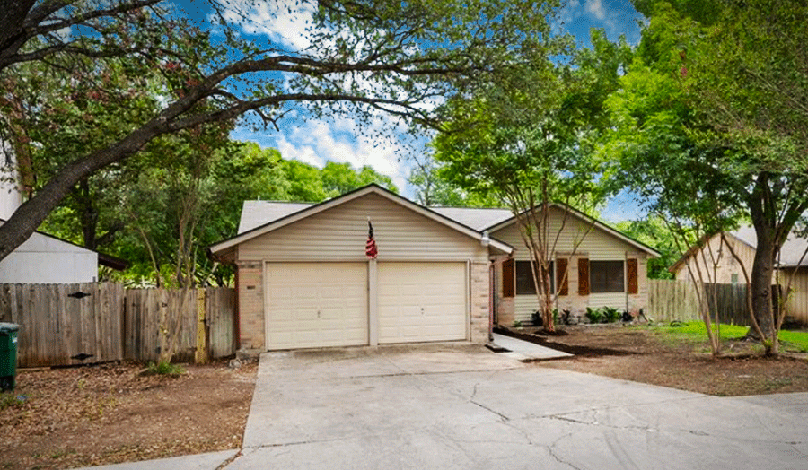 Lovely starter home for a first-time home buyer, or great for anyone looking to downsize with No Steps. Home features a large single living area with an all brick/gas fireplace, and laminate wood flooring throughout in every room. Interior has been freshly painted (2022). Nice kitchen with brand new quartz countertops (2022), lots of cabinets, eat in breakfast area with a nice window seat. All new ceiling fixtures (2022) with ceiling fans in every room to help keep cool during those hot summer days. Enjoy a very large backyard with a gigantic, covered patio for those BBQ days out of the sun. The backyard is great for entertaining, and large enough to add a swimming pool, or space to park an RV. There are two outside storage sheds for your lawn equipment. Conveniently located in Northern Hills Community between Loop 1604 East and IH 35 North.