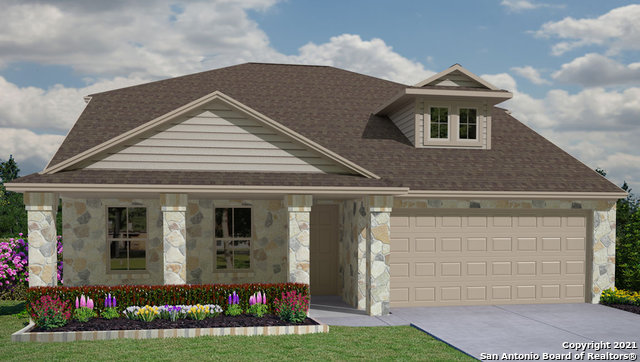This home is currently under construction. The Abilene is a two-story, 2081 square foot, 4 bedroom, 2.5 bathroom, layout designed to provide comfortable living for you and your family. Walk into the amazing family room with vaulted ceilings. This large space is perfect for entertaining. Enjoy the breakfast bar and eat-in kitchen featuring Whirlpool Stainless Steel appliances, granite countertops, ceramic tile backsplash and Mohawk Revwood flooring. The private bedroom 1 suite is located downstairs complete with an ensuite featuring a separate tub and shower, marble dual vanities, and a spacious walk in closet. The laundry room is also located downstairs. The second floor includes a full bath and three large secondary bedrooms. Additional features include spacious covered patio, full yard sod and irrigation system, and a professional landscape package. This home includes our HOME IS CONNECTED base package which includes the Amazon Dot, Front Door Bell, Front Door Deadbolt Lock, Home Hub, Light Switch, and Thermostat. This community offers 7 affordable and modern floor plans ranging from 1323 square feet to over 2700 square and features front masonry (per plan), granite kitchen countertops, stainless-steel appliances, 9-foot ceilings (per plan), full yard irrigation and landscaping, and more! Heather Glen new construction homes will also feature D.R. Horton's smart home system, Home Is Connected, ensuring security and peace of mind. Residents will enjoy quick access to I-35 and short commute times to popular local recreation, entertainment, and shopping spots. Located within desirable Comal ISD and only 2.5 miles from Gruene, Texas! Additional highlights include: Family-friendly community pool & playground. Located 15 minutes or less from Stars & Stripes Drive-In Theatre, Landa Park, and Schlitterbahn. Less than 2 miles from Comal ISD schools. Quick 20 minute commute to San Marcos Outlets. Are you ready to find your home in Heather Glen?