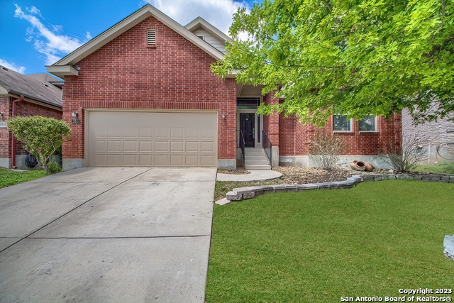 This is a beautiful and spacious one-story home located in the heart of Alamo Ranch Riverstone. It's conveniently located for an easy commute to Lackland AFB, UTSA, and South Texas Medical Center. The owner has updated the flooring throughout the house, removing all carpet for a modern and clean look. The split bedroom arrangement is perfect for a little separation and peace from others, with large secondary bedrooms right as you enter through the archway. The guest bathroom is located between the bedrooms and features tile flooring and tile surround at the tub. The walk-in closets in each room provide ample storage space. The home also features a separate, dedicated office space with French doors for a quiet workspace. The high ceilings, updated lighting, updated flooring, and modern paint colors give the home a contemporary feel. The open kitchen is perfect for entertaining, with archways separating the formal dining space but leaving an open, flowing feel. The island kitchen features slate tile, adding warmth and depth of design to the space, and stainless appliances enhance the modern feel. The primary bedroom is located at the rear of the home and features a trey ceiling for added character. The extended primary bath has a separate tub and shower along with a double vanity. The huge walk-in closet adds to the abundance of storage throughout the home. Finally, the covered patio is perfect for weekend BBQs with friends and loved ones, and the home is within walking distance to the elementary school, park, and playground in the neighborhood.