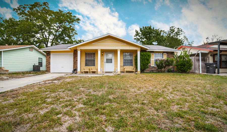 Single story home located in East Village community is less than a half mile from the Park Village Elementary School. Home features no carpet, updated kitchen (2017) with nice wooden cabinets, tiled countertops and backsplash, stainless steel appliances, and gas cooking stove. Master bath is 3/4 bath with sink, toilet and shower. Enjoy entertaining evenings in the large backyard. Home is located less than 10 minutes from IH-35 and Loop 410. Be in your new home just in time for the upcoming holidays.