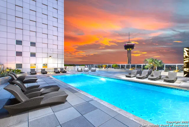 Elevated above the Grand Hyatt in the Alteza Residences, this contemporary condominium provides stellar views and outstanding amenities. Open floorplan featuring stunning wood floors in the main living areas, chef's kitchen with Bosch stainless steel appliances, breathtaking views from the floor to ceiling windows, spacious patio overlooking the Tower of Americas, motorized shades, sleek light fixtures, sizeable bedrooms, and plenty of storage. State of the art amenities include a 24-hour concierge service, refreshing rooftop pool lounge, and fitness center access. Steps from the San Antonio Riverwalk, restaurants, museums, parks, and boutiques. Take advantage of living in the midst of the growing and vibrant San Antonio and experience the ultimate urban lifestyle.