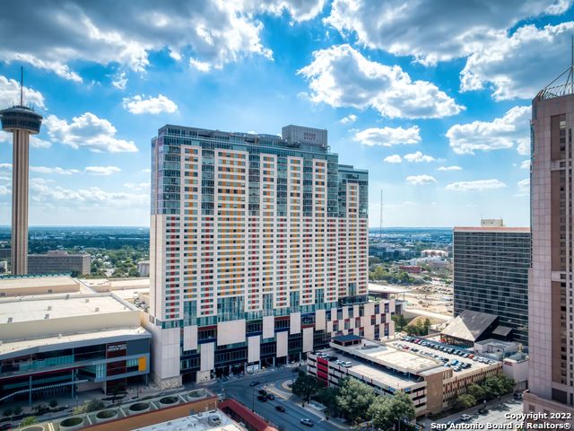 31st floor spectacular southern views of the Tower of America, New Years Fireworks, and the Alamodome from this well appointed condo. Chefs kitchen, electric shades, modern light fixtures, freshly painted with refinished floors, floor to ceiling windows, parking space and a storage unit. Enjoy 24-hour concierge service, rooftop pool, above the S.A. Riverwalk and all that living in downtown has to offer.