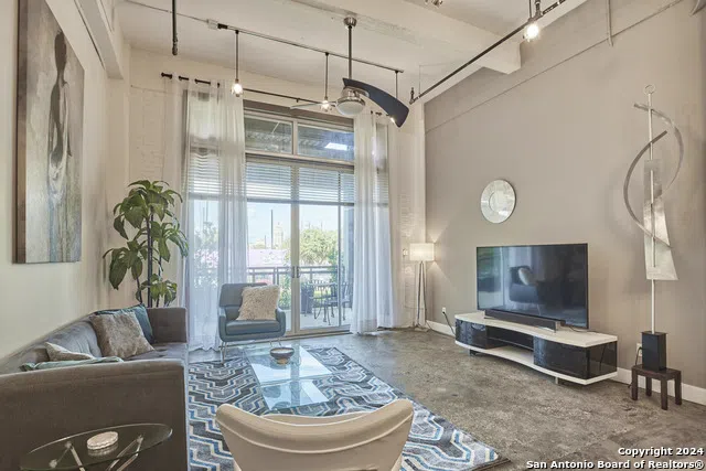 Seize this opportunity to call the Judson Candy Factory Lofts in Southtown home. This stunning first floor loft features a true one bedroom, one bath layout with the original flooring still intact. High ceilings throughout and floor-to-ceiling windows in the living room creates a spacious and airy atmosphere. The oversized patio provides a wonderful place to unwind while enjoying a nice view of the downtown San Antonio skyline. Enjoy the convenience of two assigned, covered parking spaces, a large private storage area in the basement, and a community bicycle storage area. The community rooftop patio provides stunning city views, making it an ideal spot to relax or to entertain. Controlled access to the condo community makes parking a breeze! The community provides a swimming pool, two dog parks, an indoor grooming station ready for your fur baby, and a fitness center. Enjoy walking to the King William district, Blue Star, numerous fabulous restaurants, and even a grocery store. Run, walk, or bike to the historic missions or to downtown on the Mission Reach riverwalk to get fresh air while avoiding traffic. This loft is perfectly situated minutes from downtown and close to both Lackland AFB and Fort Sam Houston Army Base. Whether it's for an investment opportunity or personal, don't miss your chance to experience urban lifestyle in a fabulous loft-schedule your tour today!