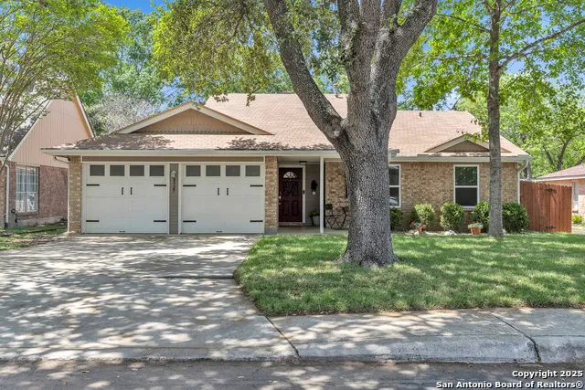**Location Location Location** Show stopper!! Pride in ownership shows throughout this beautiful well maintained and upgraded home that has been gently lived in. Almost everything is new:) New stained privacy fence, new water heater, new primary bathroom, new windows, new gutters system with leaf guard, new water softener, new garage door motors, new utility sink in the garage, new attic door, new front yard sod and landscaping, new vanity in the secondary bath, new light fixtures and decor paint throughout. Your new home is nestled on a large lot with mature trees. Wood-like ceramic tile floors throughout the main living, kitchen, dining, and primary bedroom. Carpets are only present in the spare bedrooms. This one features a beautiful floor to ceiling real brick wood burning fireplace. You can relax or entertain your guest in the Zen-like private backyard with a covered patio and extended deck that backs up to a private greenbelt. All this is within 10 mins to the South Texas Medical Center, USAA, UTSA, The Shops at La Cantera, The RIM, Valero Energy, Medtronics. Nustar Energy, 20 minutes to LAFB and Downtown. Book your showing to this rare single story that will sure to please its new owners.